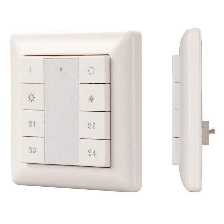 - Простая настройка: номер группы и сцен задаются физическими переключателями, без программатора