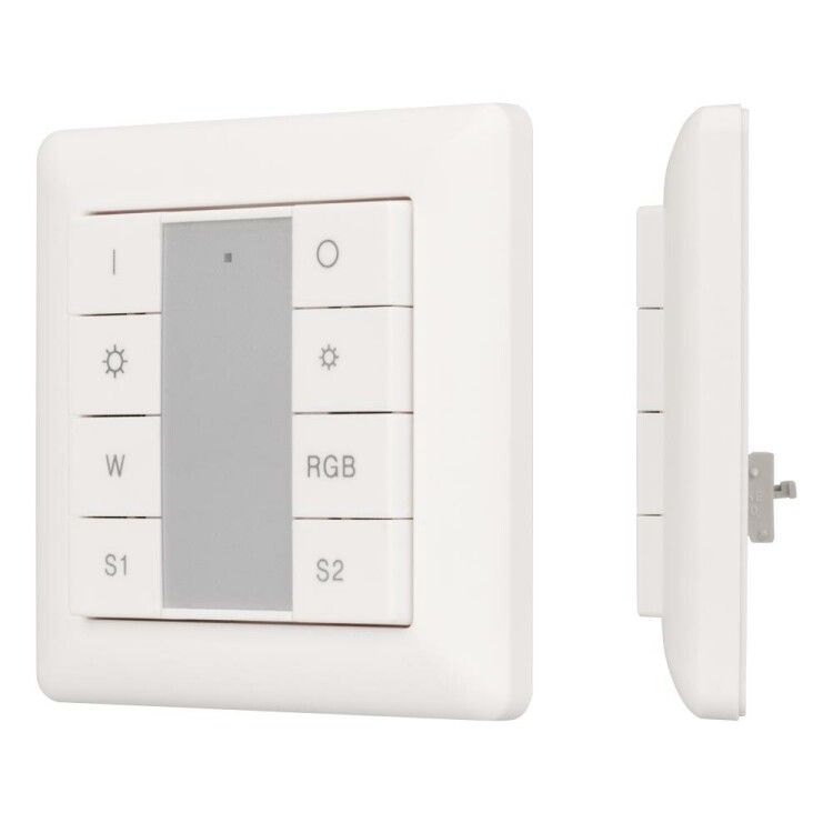 Панель управления освещением Knob SR-2422K8-DT8 (DALI, RGBW, 1 зона) от Arlight - встраиваемая цифровая панель для точного управления светом RGBW-лент через протокол DALI. Подходит для систем умного освещения в коммерческих и интерьерных проектах.