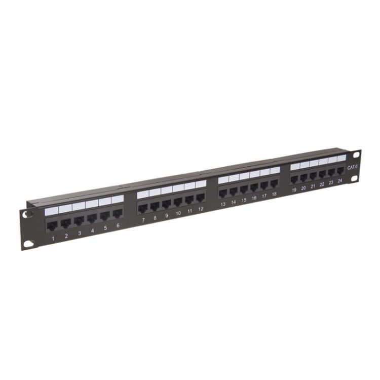 Панель совместима со всеми стандартными стойками 19 дюймов. Монтаж осуществляется с помощью крепежных уголков, входящих в комплект. Для подключения кабелей используются IDC-клеммы на задней стороне - достаточно зачистить жилы и закрепить их в специальные слоты с помощью обжимного инструмента. Кабели выводятся сверху или снизу, фиксируются встроенным органайзером. Подключение patch-cord’ов выполняется спереди - каждый порт имеет стандартный RJ-45 разъем. Убедитесь, что радиус изгиба кабеля не меньше 4× диаметра кабеля (обычно ≥ 30 мм).
