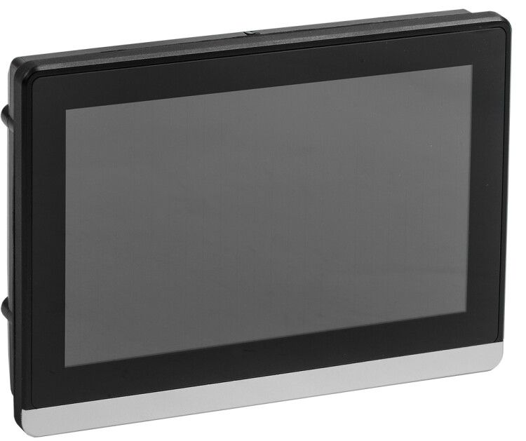 Панель оператора 7'' с емкостным мультисенсорным дисплеем. Корпус: аллюминиевая лицевая рамка пластиковым корпусом ЦПУ Cortex A8 600МГц экран 128:75 (1024х600) цветопередача 24бит USB 1xHost 1xSlave 2хRS485/232 1хEthernet 24В DC защита от перенапряжений ONI - ETC-A8TS-HSSE-S-070 IEK