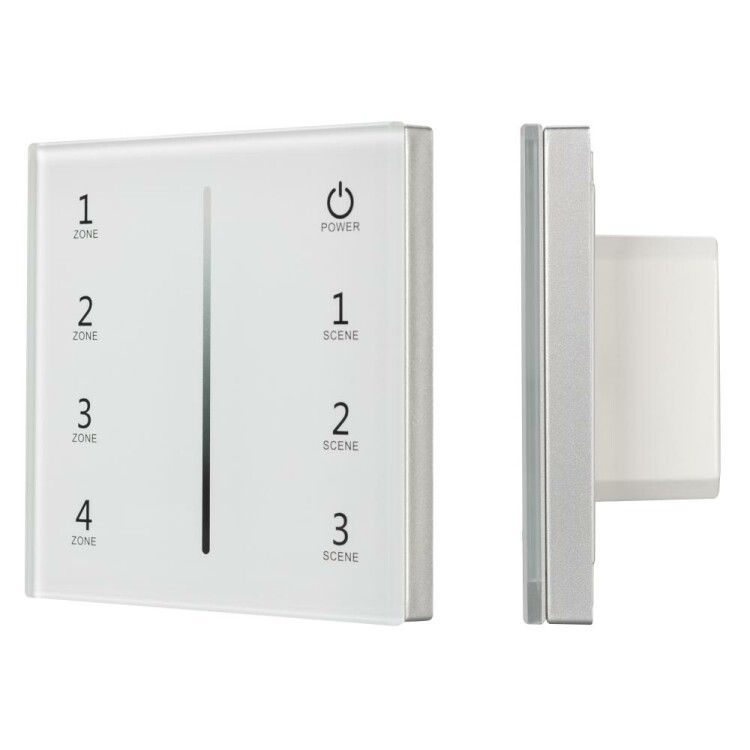 - Четыре независимые зоны позволяют управлять разными группами светильников одной панелью