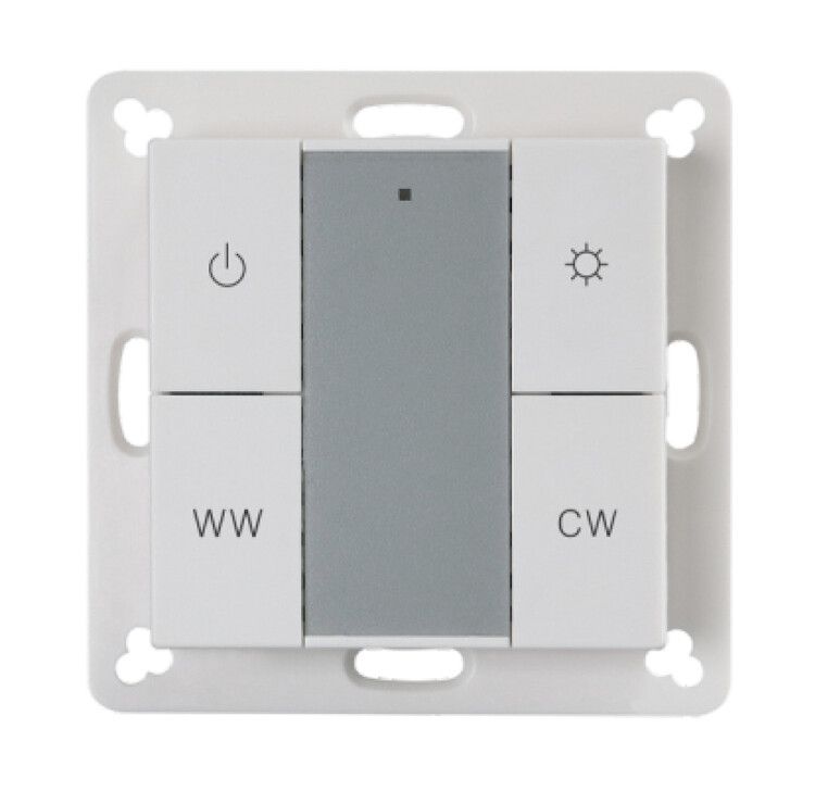 Панель управления 4-кнопочная ME6 DALI 4K-CCT-1G - это компактное устройство для ручного управления освещением в системах на базе протокола DALI. Устройство от бренда Световые Технологии предназначено для установки в подрозеточную коробку и позволяет управлять яркостью и состоянием светильников через четыре кнопки.
