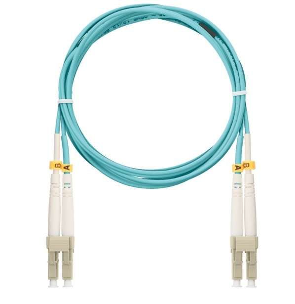 Патч-корд волоконно-оптический многомодовый 50/125мкм стандарта ОМ3 LC/UPC-LC/UPC двойной LSZH нг(В)-HFLTx 2мм аква 1м от бренда NIKOMAX (артикул nmf-pc2m3c2-lcu-lcu-001) предназначен для быстрого и надёжного соединения оптического оборудования - например, коммутаторов, серверов и тестеров - в локальных сетях с использованием многомодового волокна.