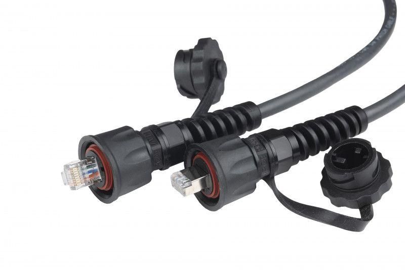 Промышленный патч-корд FTP IP67 категория 5e с защитными крышками 10 м черный экранированный - 46988 Hyperline