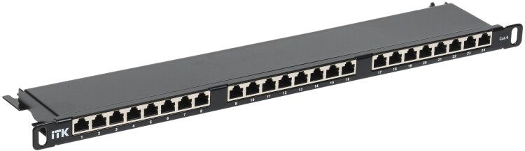 Патч-панель ITK pp24-d05uc5es-d05h - компактная экранированная коммутационная панель категории 5e с 24 портами RJ45, предназначенная для организации высокоплотной кабельной инфраструктуры в 19-дюймовых стойках. Подходит для серверных помещений, центров обработки данных и офисных сетей, где требуется надежное и организованное подключение медных кабелей.