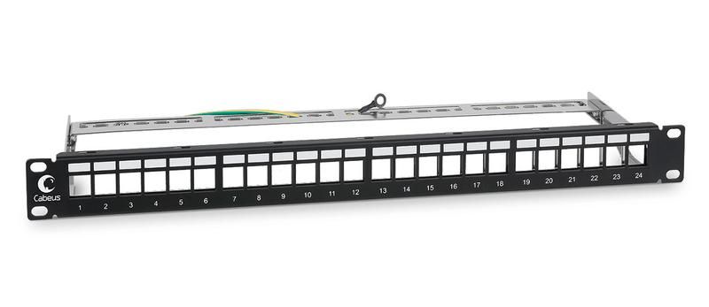 Модульная патч-панель 19" 24 порта 1U для экранированных модулей с задним кабельным организатором (без модулей) | 7955c Cabeus PLB-24-SH