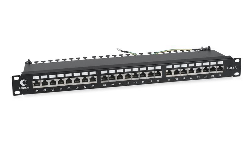 Патч-панель PL-24-Cat.6a-SH-Dual IDC 19 (1U), 24 порта RJ-45, категория 6a, полностью экранированная, с задним кабельным организатором - 7653c Cabeus