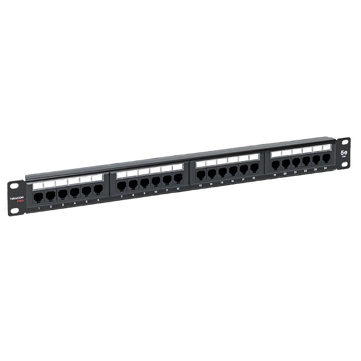 Патч-панель TERACOM PRO 19'' Cat.5E 1U неэкранированная UTP 24 порта RJ-45 Dual IDC | TRP-PPNL-5EUTP-1U24 EKF представляет собой пассивное распределительное устройство, предназначенное для терминирования витопарных кабелей и коммутации каналов связи с активного оборудования на порты информационных розеток и оконечное оборудование пользователей.