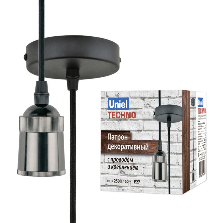 Патрон декоративный Uniel ul-00005287 - это компактное решение для подключения ламп E27 с декоративным корпусом из алюминия в матово-черном исполнении «жемчуг». Устройство оснащено готовым проводом длиной 1 метр и креплением, что упрощает установку в светильниках, бра и настенных люстрах.