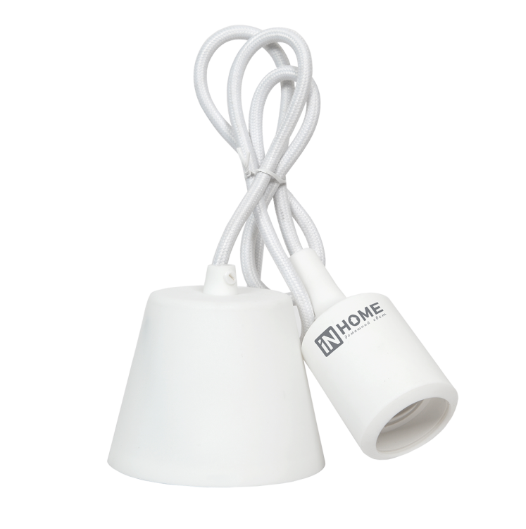 Патрон силиконовый Е27 со шнуром 1м бел. IN HOME 4690612008684