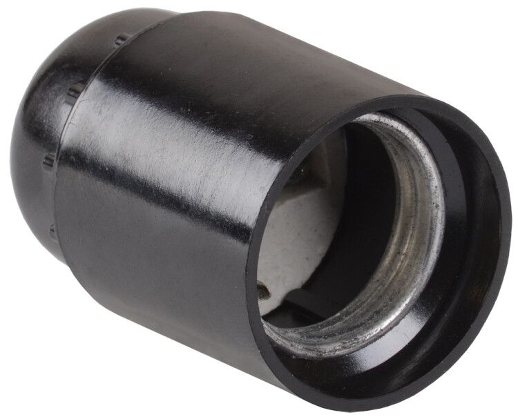 Патрон подвесной карболитовый Е27 черный используется для фиксации и питания ламп накаливания, галогенных и светодиодных с цоколем E27. Применяется в настольных, потолочных и подвесных светильниках, а также во временных системах освещения - например, на стройплощадках, в мастерских или складах. Подходит для установки внутри закрытых корпусов, где требуется механическая защищённость и термостойкость.