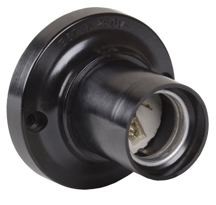 Патрон потолочный карbolитовый Е27 черный (50 штук), стикер на изделии Пкб27-04-К21 от бренда IEK предназначен для надёжного крепления ламп с цоколем E27 в стационарных светильниках. Этот патрон используется там, где важна долговечность и устойчивость к перегреву - например, в жилых помещениях, офисах или на объектах с постоянным освещением.