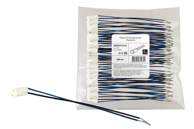 Патрон sq0335-0131 совместим с любыми лампами, имеющими стандартный цоколь G4. Для установки достаточно вставить два штырька лампы до щелчка - контакт происходит через пружинные зажимы внутри патрона. Подключение проводов осуществляется к клеммным площадкам с помощью винтового зажима. Учитывайте, что максимальная рабочая температура керамики позволяет использовать патрон с лампами до 50 Вт, но для долговечности рекомендуется применять его с LED-лампами мощностью до 20 Вт.