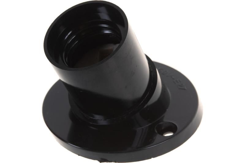 Патрон карbolитовый угловой E27 черный предназначен для фиксации ламп с цоколем E27 в условиях, когда необходимо смонтировать источник света перпендикулярно поверхности стены или потолка. Подходит для установки в коридорах, туалетах, подвалах, мастерских, на производстве - там, где важна компактная и устойчивая фиксация светильника.