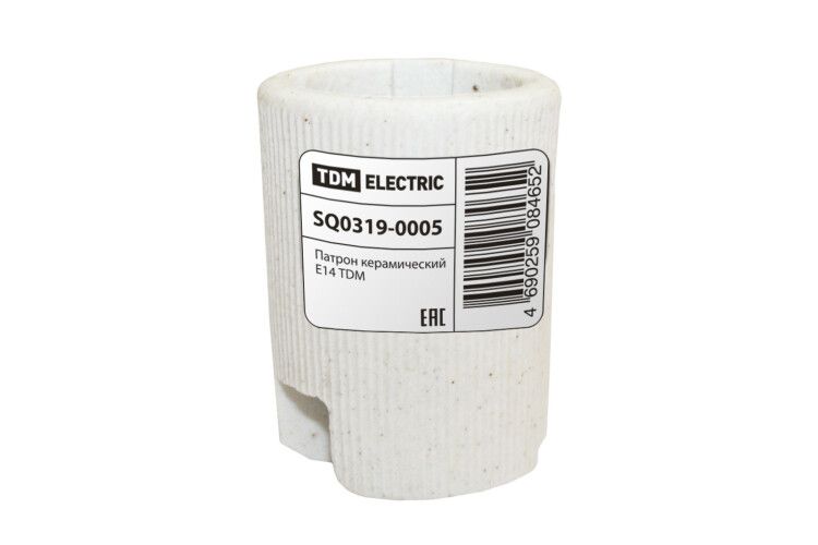Патрон керамический E14 (контакты медь, гильза медь) от TDM ELECTRIC - надёжный элемент для фиксации лампочек малой мощности в условиях повышенной температуры и влажности. Подходит как для домашнего освещения, так и для промышленного оборудования.