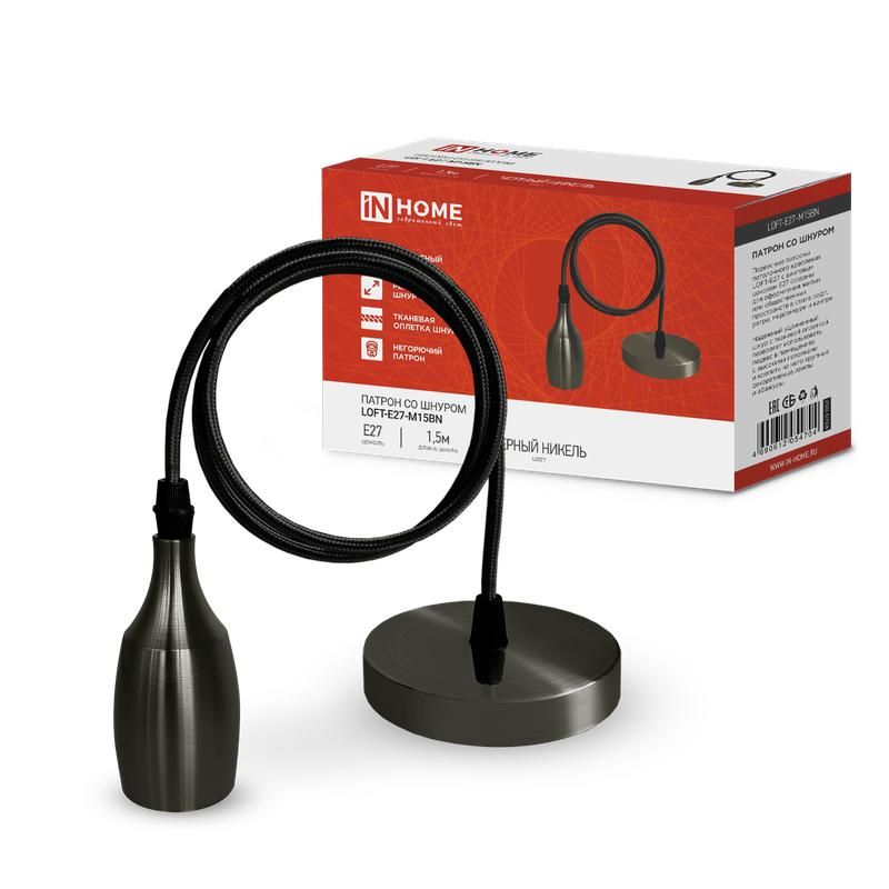 Патрон LOFT-Е27-M15BN со шнуром 1.5м черн. никель IN HOME 4690612054704