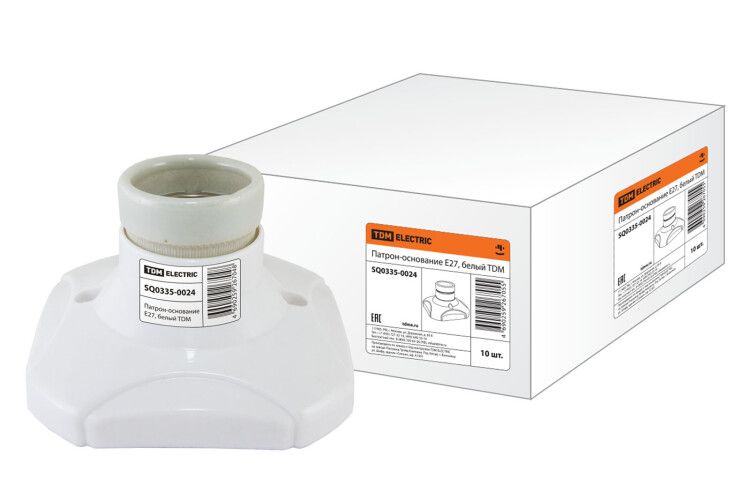 - Патрон-основание керамический E27 белый от TDM ELECTRIC (sq0335-0024) лучше всего применять в средах с колеблющейся температурой - керамика не реагирует на перепады, как пластик