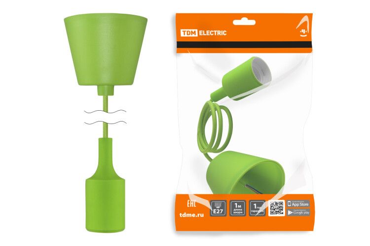 Патрон пластиковый E27 с подвесом 1 м, зеленый от TDM ELECTRIC (артикул sq0335-0064) предназначен для крепления ламп с цоколем E27 на расстоянии от точки подключения - идеально подходит для освещения в местах, где нужна гибкая фиксация светильника.