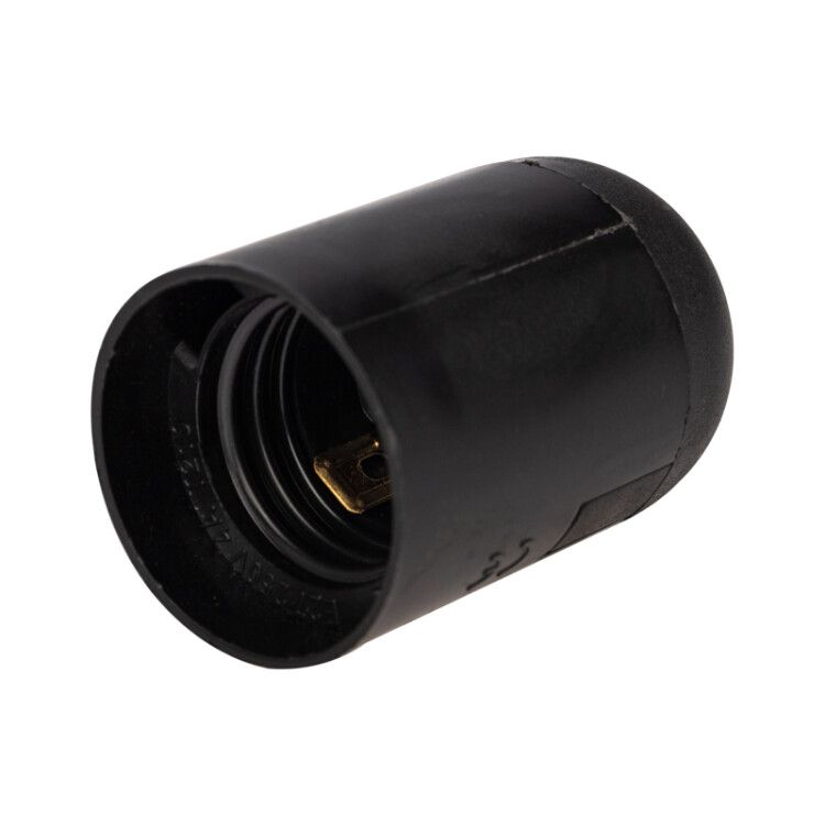 Патрон пластиковый термостойкий подвесной Е27, черный - это надежное и удобное решение для закрепления ламп в осветительных приборах или для монтажа временного освещения на строительных и отделочных площадках.