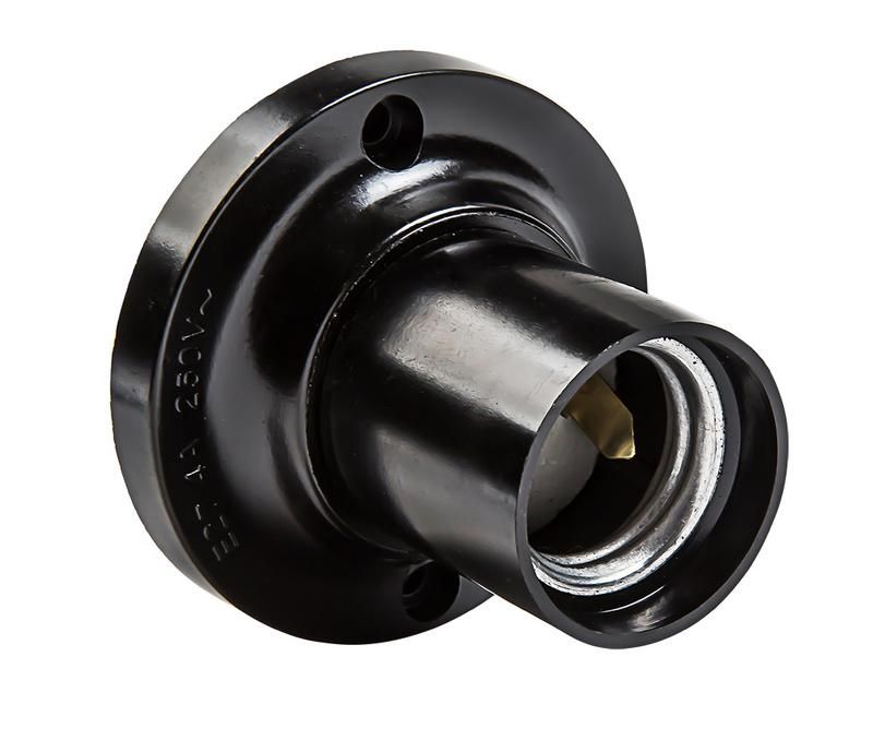 Патрон потолочный Е27 Ф П-01 карболитовый черный предназначен для фиксации ламп накаливания, галогенных и светодиодных светильников с цоколем E27. Его используют там, где требуется прочное и безопасное соединение между проводкой и источником света - например, в жилых комнатах, коридорах, кладовых, подъездах и других закрытых помещениях без повышенной влажности.