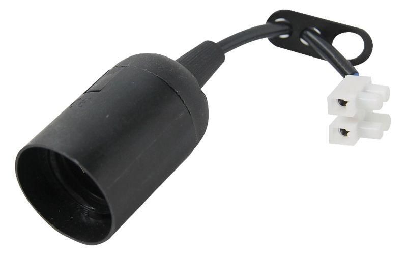 Патрон V03-PA-B-E27 имеет уже прикреплённый двухжильный провод с клеммой - достаточно зачистить концы и подключить к фазе и нулю через автомат или распределительную коробку. Установка занимает минуту: просто закручиваете лампу в цоколь и подводите питание. Кабель не экранирован, не имеет заземления - подключение допустимо только в сетях TN-C-S или TN-S, где есть отдельный PE-провод. Для работы с металлическими светильниками или люстрами требует обязательного заземления корпуса отдельным проводом.