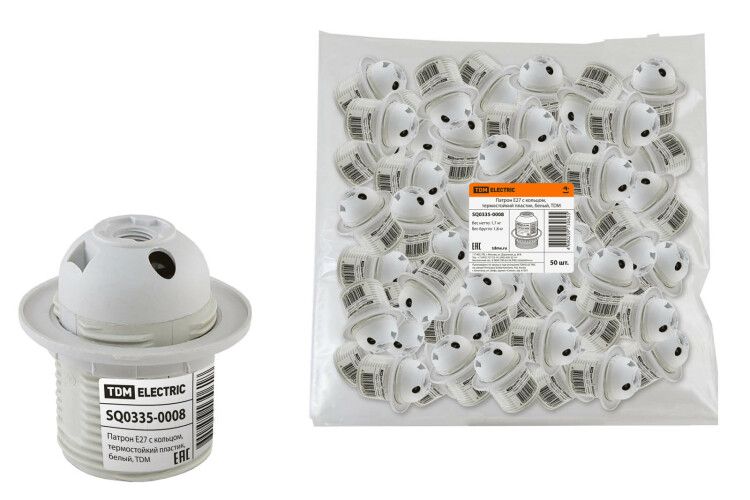 | Патрон TDM E27 с кольцом, термостойкий пластик, белый | 01.01.2026 | 927 шт. | 40,16 ₽ | шт. | от 3 дней |