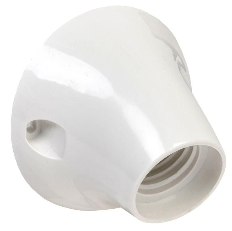 Патрон угловой Е27 пластик белый используется для фиксации ламп накаливания, галогенных или светодиодных с цоколем E27 в устройствах, где важно сместить источник света под углом. Подходит для монтажа в настольных лампах, бра, декоративных светильниках, а также во временных осветительных установках на стройплощадках или в бытовых условиях.