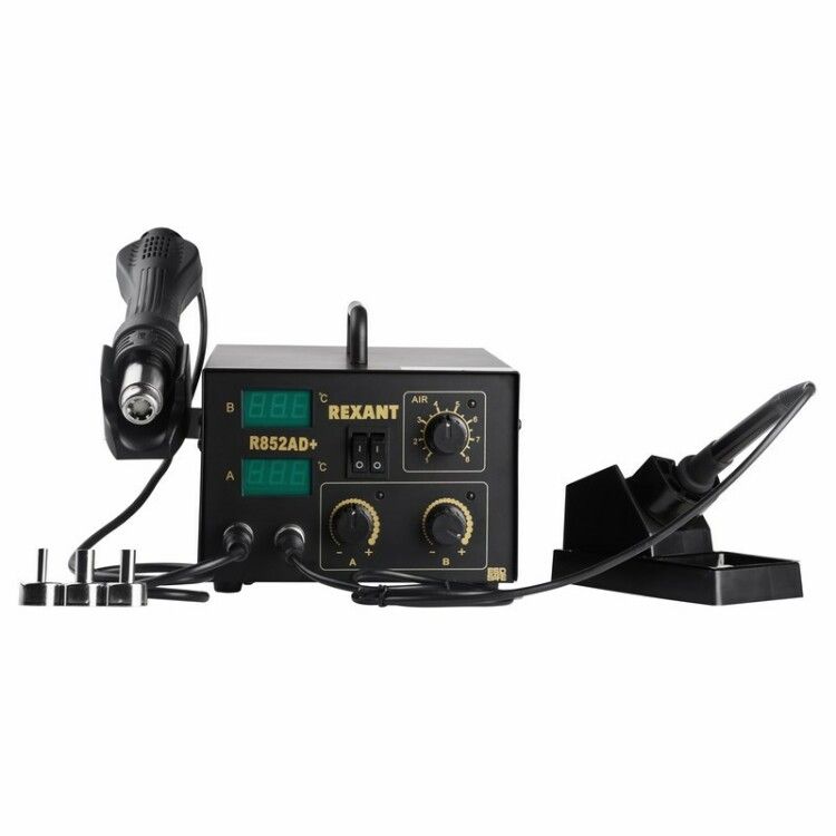 Паяльная станция (паяльник+термофен) с цифровым дисплеем 100-480 °С (R852AD+) | 12-0724 REXANT MEET