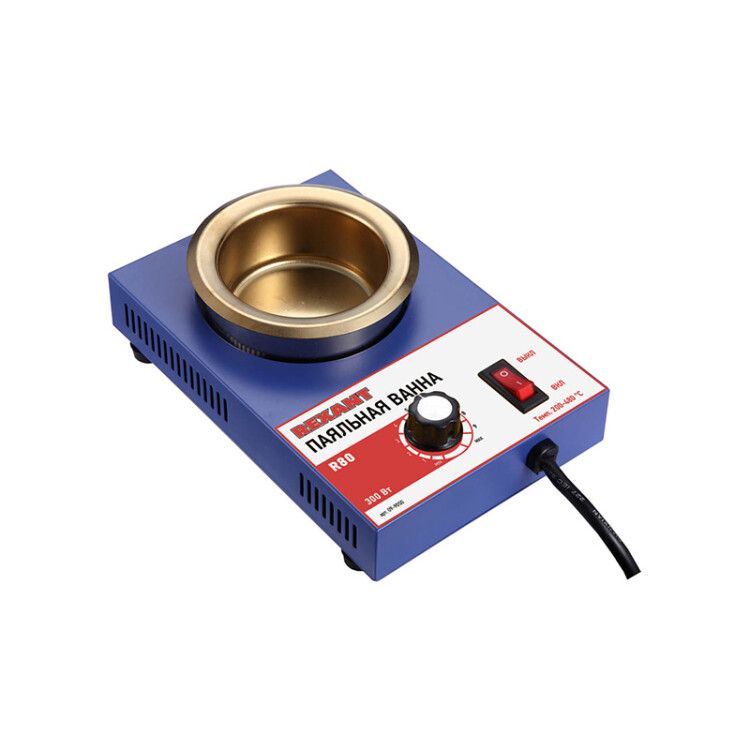 Паяльная ванна Rexant R80 - компактное оборудование для лужения проводов, кабельных наконечников и других металлических деталей в расплавленном припое. Модель R80 рассчитана на работу с припоем массой до 1600 г, обеспечивает точный температурный контроль в диапазоне 200–480 C и подходит для серийной пайки в ремонтных мастерских и на производстве.