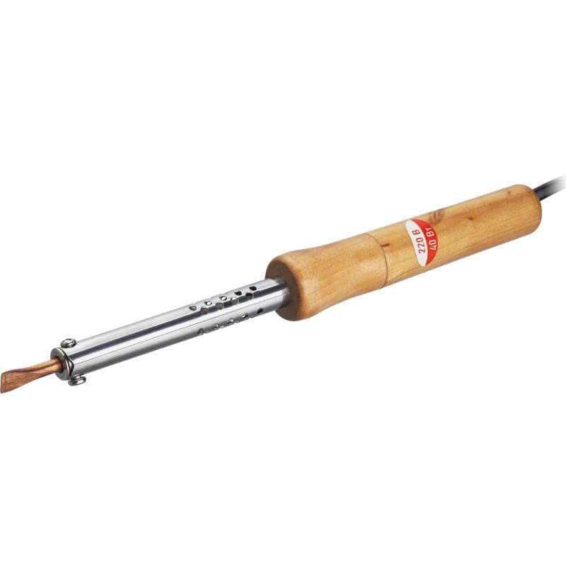 Электрический паяльник 90 221 OSE-Pes06-40W-CP от бренда ОНЛАЙТ - компактный инструмент мощностью 40 Вт с деревянной ручкой и прямым клином, предназначенный для точечной пайки радиоэлементов и проводов в условиях ограниченного пространства. Подходит для ремонта бытовой электроники, сборки печатных плат и мелкосерийного производства.