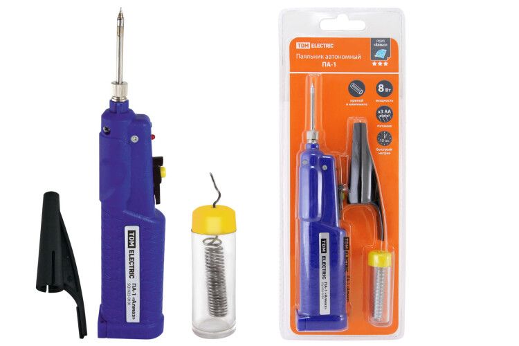 Паяльник автономный ПА-1 от TDM ELECTRIC - идеальное решение для автономной пайки электрических соединений. Этот паяльник оснащен батареями типа 3хАА, что позволяет использовать его в любом месте без необходимости подключения к электрической сети. Преимущество данной модели заключается в быстром разогреве - всего за 60 секунд паяльник будет готов к работе.