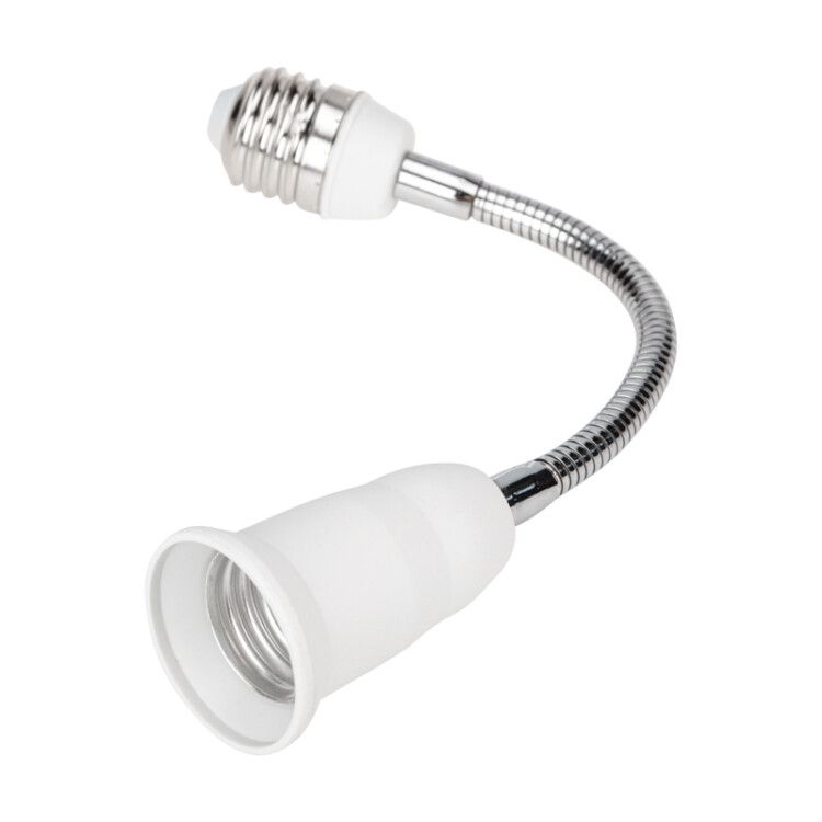 Переходник Е27-Е27 гибкий 150 мм используется для подключения лампы с цоколем E27 к существующей сети через гибкий проводящий элемент. Он позволяет изменять направление светового потока без перестановки всего светильника. Применяется в системах акцентного, рабочего и декоративного освещения, особенно там, где важна точная настройка угла света - например, в нишах, на верстаках, в мастерских, витринных шкафах или внутри оборудования.