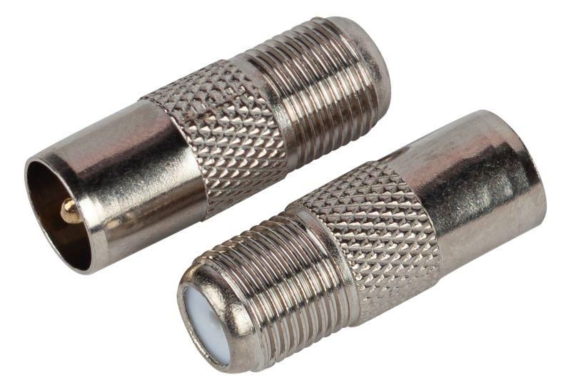 Переходник гнездо F-штекер TV используется для перехода между типами разъёмов: штекер (на конце кабеля) и гнездо (на устройстве). Он нужен, когда кабель оканчивается F-штекером, а телевизор, ресивер или усилитель имеют гнездовой вход. Применяется в системах антенного, спутникового и кабельного телевидения, где используются коаксиальные кабели с волновым сопротивлением 75 Ом.