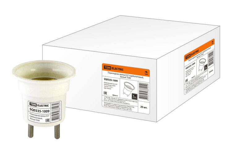 | Переходник вилка-Е27 карболитовый, белый | SQ0335-1009 | TDM | 03.03.2026 | Под заказ | 45,08 ₽ | шт. | от 30 дней |