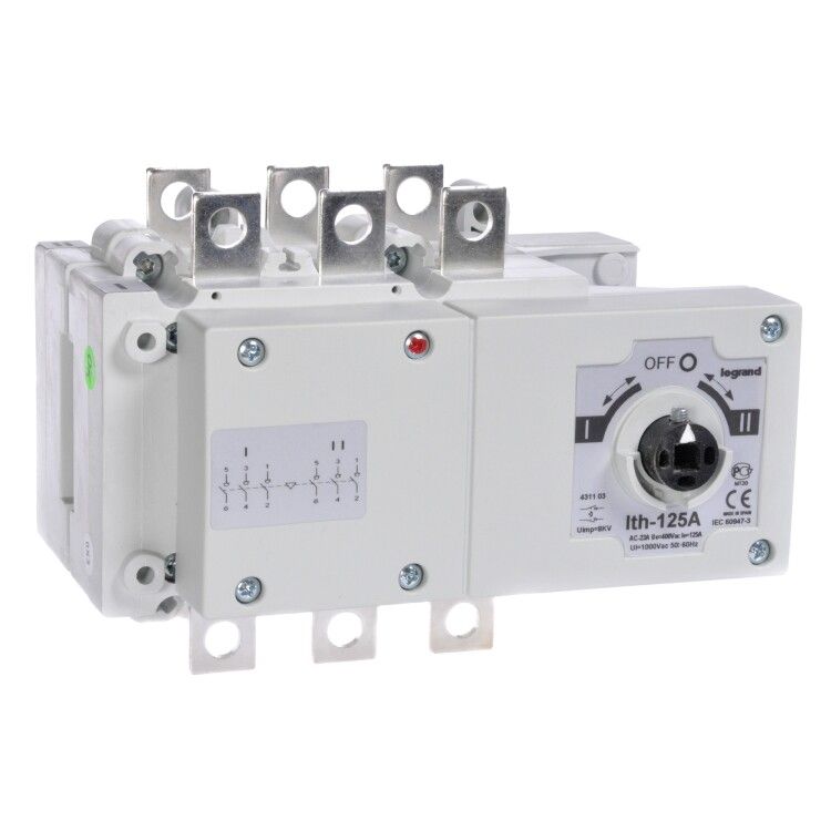 - Обязательно используйте рубильник реверсивный 125A 3-полюсный Legrand Euro 431103 только после отключения питания и с применением блокираторов LOTO