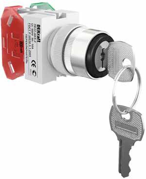 Переключатель на 2 фиксированных положения I-O с ключом 1НО+1НЗ AKS-2 Ф22 от DEKraft предназначен для ручного включения и выключения электрических цепей с фиксацией в двух состояниях. Устройство совмещает надежную механическую блокировку ключом, защиту IP54 и винтовые зажимы для подключения - идеально подходит для промышленного оборудования, где важна безопасность и долговечность.