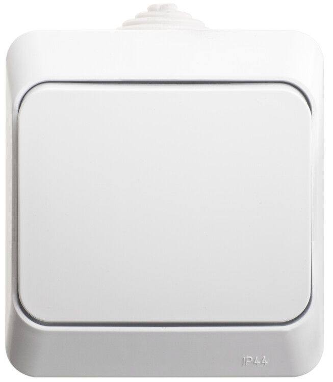 Переключатель проходной 1-клавишный наружный IP44 белый схема 6 используется для переключения одного источника света между двумя точками - например, в коридоре, на лестнице или в длинном помещении. Подходит для установки в жилых домах, офисах, складах и других объектах, где требуется удобное управление освещением без необходимости возвращаться к первому выключателю. Устройство рассчитано на работу в условиях повышенной влажности и запылённости, что делает его пригодным для неотапливаемых помещений, подъездов, гаражей и наружных зон с защитой от брызг.
