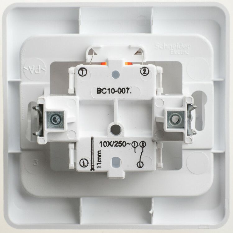 Переключатель проходной bc10-007b совместим только с другими проходными переключателями той же серии и типа - он не заменяет обычный выключатель. Для работы системы необходимы два таких устройства, соединённых трёхжильным кабелем между собой. Монтаж выполняется в стандартную глубокую монтажную коробку (обычно 60–70 мм глубины). Клеммы рассчитаны на медные провода сечением до 2,5 мм2. Не требует специальных инструментов - достаточно отвертки. Габариты 81×81 мм соответствуют стандартным подрозетникам в России.