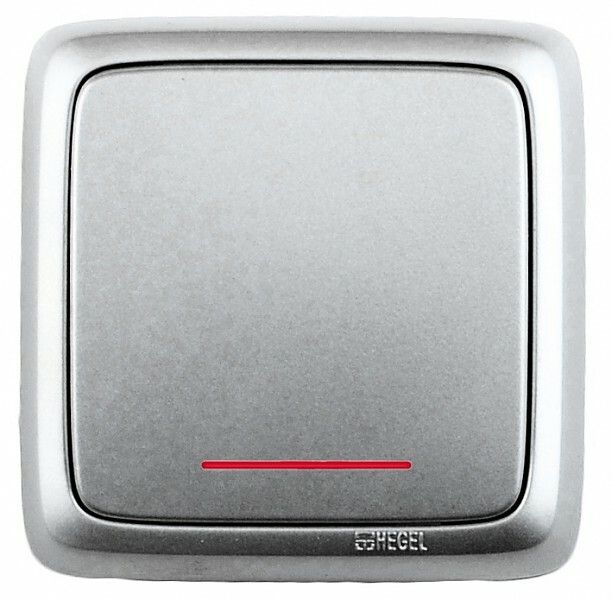 Переключатель открытой установки одноклавишный с индикацией и изолирующей пластиной, 10А, 250В, цвет серебро от бренда HEGEL (артикул ва10-164-06) предназначен для управления освещением с двух и более точек - например, для удобного включения и выключения света у входа и в конце коридора.