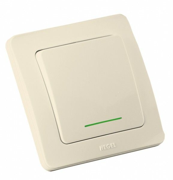 Переключатель одноклавишный скрытый с индикацией слоновая кость 10А - ВС10-362-01 HEGEL
