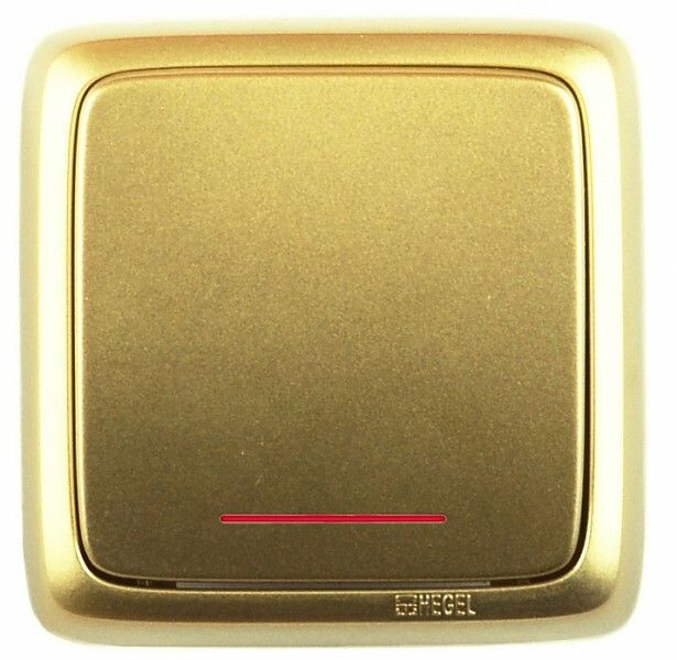 Переключатель одноклавишный наружный с изоляционной пластиной индикацией золото 16А - ВА16-164-07 HEGEL