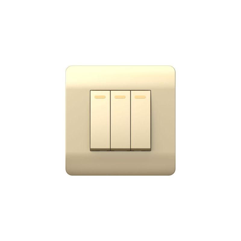 Переключатель 3-клавишный с подсветкой, 10А, шампань(NEW3-E) | 431512 CHINT