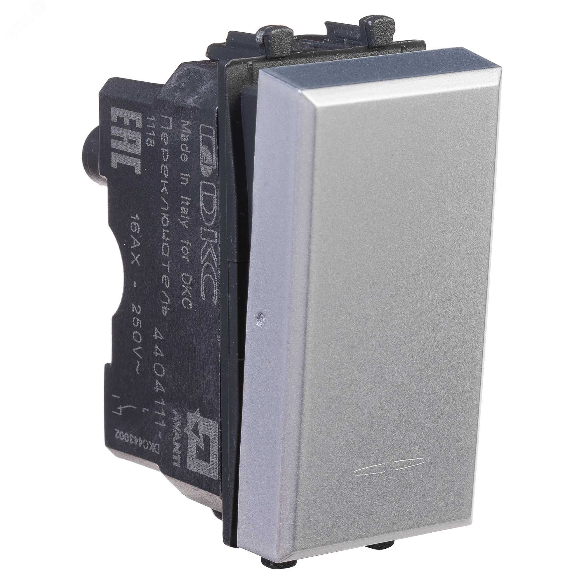 Переключатель модульный 1-кл. 1мод. Avanti "Закаленная сталь" 16А сер. DKC 4404111 ДКС