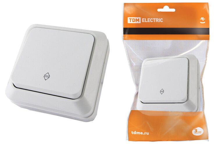 Переключатель на 2 направления одноклавишный открытой установки IP20 10А, белый ''Ладога'' - SQ1801-0005 TDM