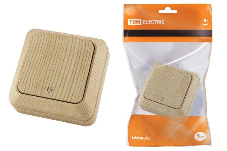 Переключатель на 2 направления 1-кл. открытой установки IP20 10А, сосна "Ладога" | SQ1801-0045 TDM