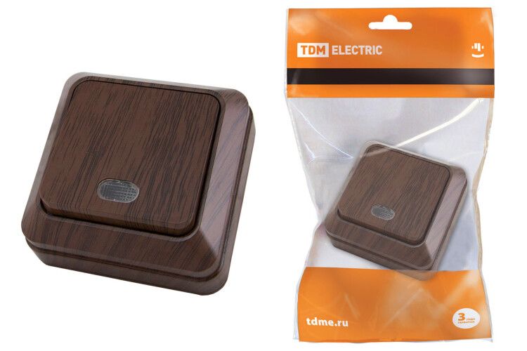 Переключатель на 2 направления 1-кл. открытой установки с подсветкой IP20 10А, бук "Ладога" | SQ1801-0032 TDM