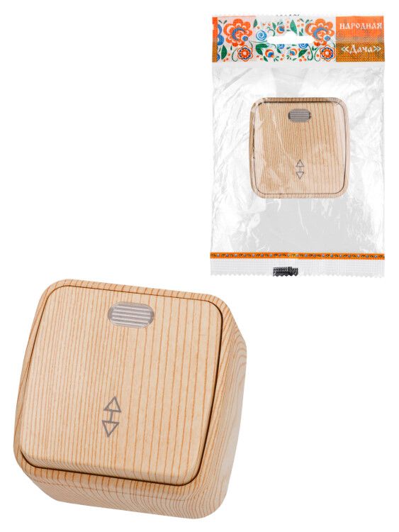 Переключатель на 2 направления 1-кл. открытой установки с подсветкой IP20 10А, сосна "Дача" Народная | SQ1824-0056 TDM