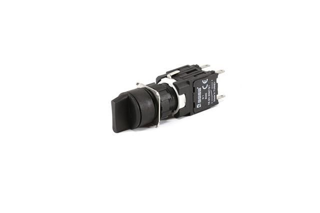 Этот селекторный переключатель позволяет выбрать одно из трёх устойчивых положений: «Выключено», «Режим A» и «Режим B». Каждый контакт замыкается только в своём положении - в остальных он остаётся разомкнутым. Назначен для ситуаций, когда важно исключить случайное переключение: например, при управлении двумя различными источниками питания, выборе скорости двигателя или переключении между основным и резервным контуром.