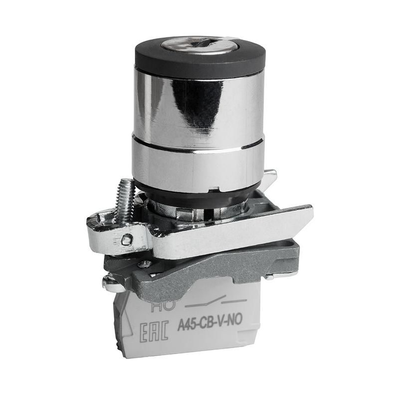 Переключатель с ключом 2 положения металл 1НО C4-SK-21 D22 XB4BG21 от КЭАЗ - надёжное устройство для ручного управления оборудованием в сложных промышленных условиях. Металлический корпус, защита IP65 и фиксация в обоих положениях делают его подходящим для систем, где важна безопасность и долговечность.