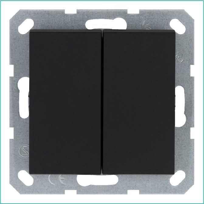 Выключатель проходной двухклавишный 10A 250V~ черный матовый (soft touch) от бренда Jasmart, артикул g3022pb - устройство для управления освещением с двух и более точек. Подходит для установки в жилых помещениях, коридорах, лестницах и других зонах, где требуется удобное переключение света с разных сторон.